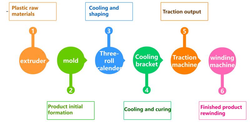 Voorbehandeling van grondstoffen: Plastic deeltjes + kleurmasterbatch/additieven worden gedoseerd, gemengd en gedroogd voordat ze in de extruder worden gevoerd.