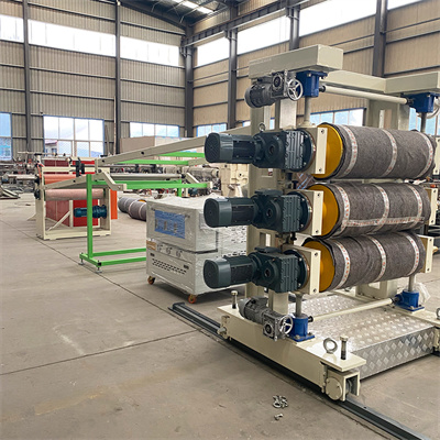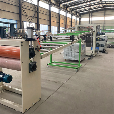 De gedroogde PS-deeltjes worden via een automatisch toevoerapparaat naar de extruderhopper getransporteerd. De extruderschroef smelt de vaste PS-deeltjes geleidelijk tot een uniforme smelt door rotatie en externe verwarming. De smelt wordt naar de T-matrijs (vlak stroomkanaal) geduwd om voorlopig de breedte van de plaat te bepalen. De smeltfilm komt in de drierollenkalander terecht en wordt snel gestold en gevormd. Het gevormde vel wordt met een uniforme snelheid door de tractiemachine getrokken en de bramen worden verwijderd door de trimmachine. Ten slotte wordt het door de wikkelaar tot een gewone spoel gerold.