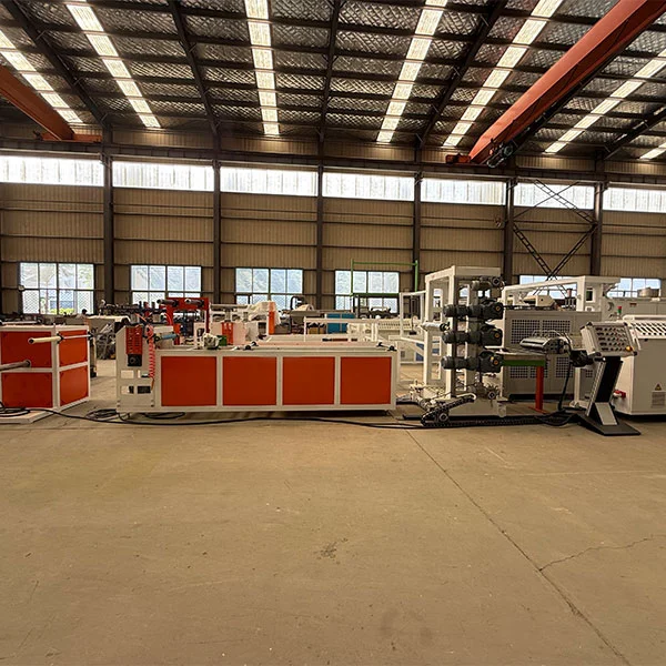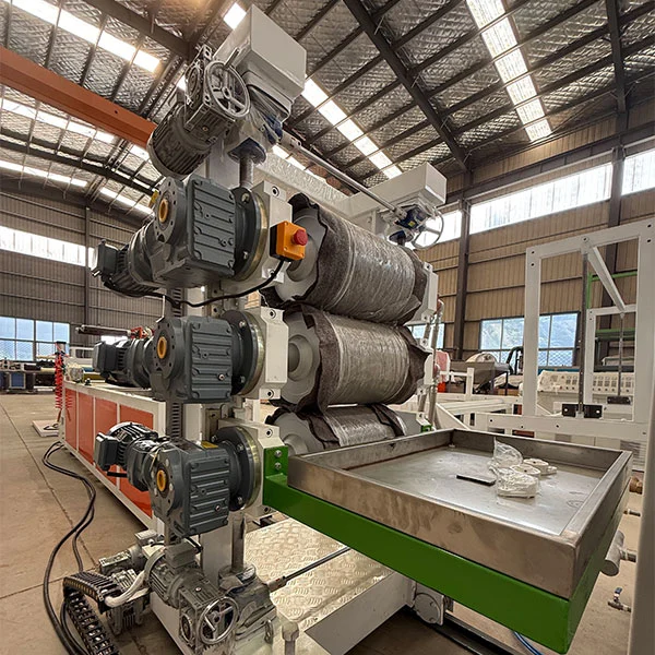 De TPU-plaatvorm maakt gebruik van een verchroomde, spiegel-afgewerkte T-DIE-kop. Het ontwerppadontwerp is symmetrisch en glad, zonder dode vlekken, waardoor uniforme smeltverdeling zorgt. De matrijs van de lip is fijnafgestemd (met een nauwkeurigheid van 0,01 mm), die vellendiktes omvatten van 0,1 tot 5 mm. De extrudermachine van de TPU-plaat is uitgerust met een koel- en vormeenheid van drie rollen. Het roloppervlak is spiegelpolijst en de koelwatertemperatuur wordt geregeld door een constant temperatuursysteem. Dit zorgt voor snelle koeling en vormgeven en zorgt voor een glad, krasvrij oppervlak. De vlakheid en dikte -tolerantie van het vel (binnen ± 0,03 mm) worden geregeld door de druk tussen de rollen.