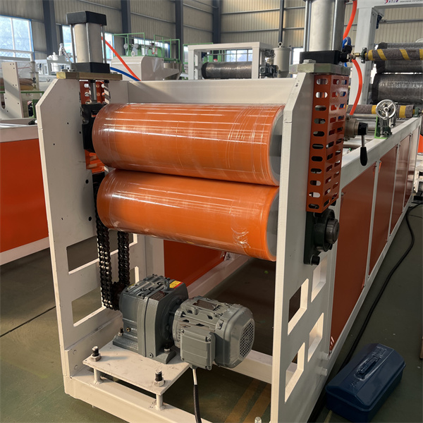De TPU-plaatmal maakt gebruik van een verchroomde, spiegelafgewerkte T-matrijskop. Het ontwerp van het stroompad is symmetrisch en glad, zonder dode hoeken, waardoor een uniforme smeltverdeling wordt gegarandeerd. De lipopening van de matrijs is nauwkeurig af te stemmen (met een nauwkeurigheid van 0,01 mm), waardoor plaatdiktes van 0,1 tot 5 mm mogelijk zijn. De TPU-plaatextrudermachine is uitgerust met een koel- en vormeenheid met drie rollen. Het roloppervlak is spiegelgepolijst en de koelwatertemperatuur wordt geregeld door een constant temperatuursysteem. Dit zorgt voor een snelle afkoeling en vormgeving en zorgt tegelijkertijd voor een glad, krasvrij oppervlak. De vlakheid en diktetolerantie van de plaat (binnen ±0,03 mm) worden geregeld door de druk tussen de rollen.